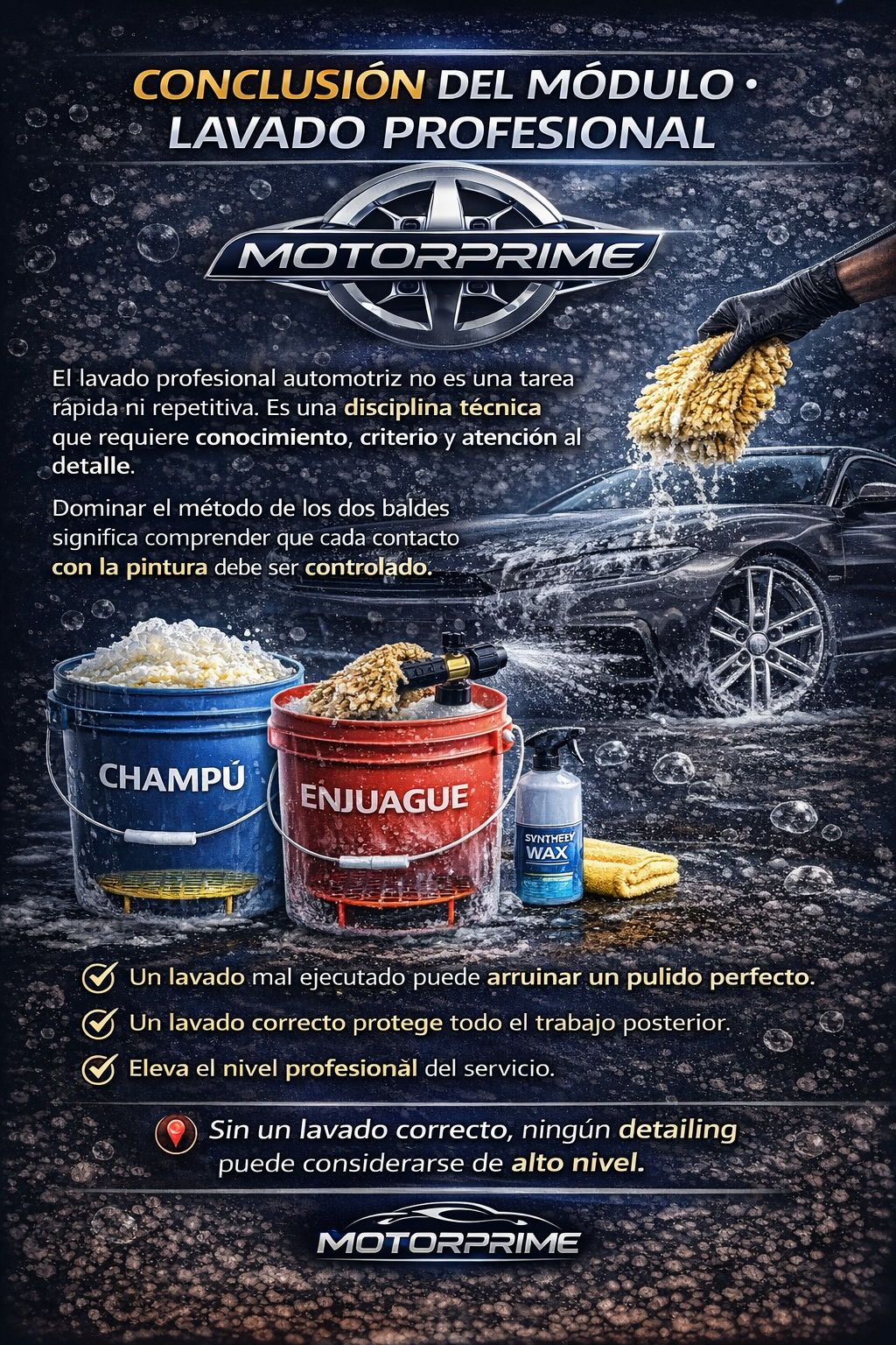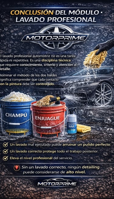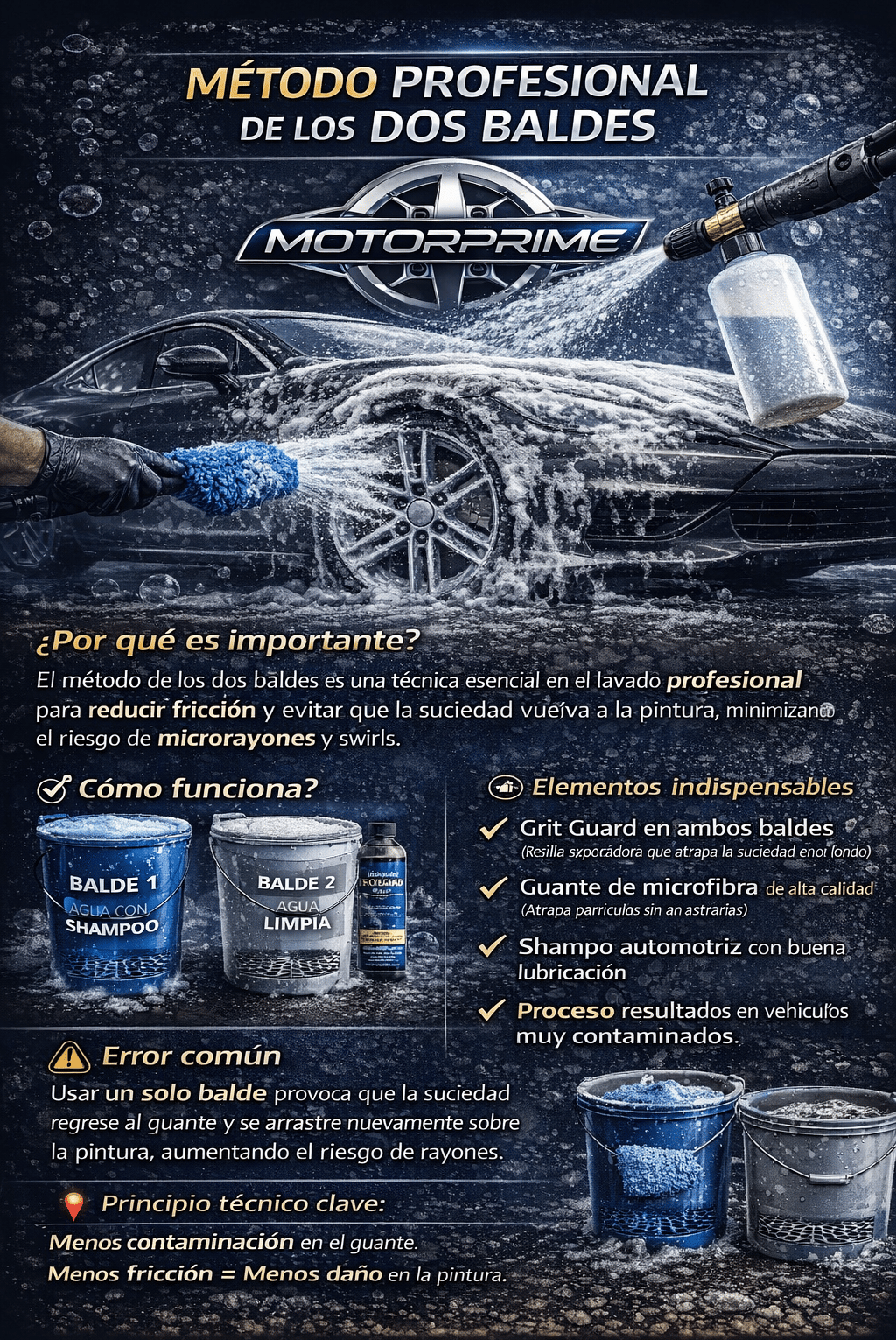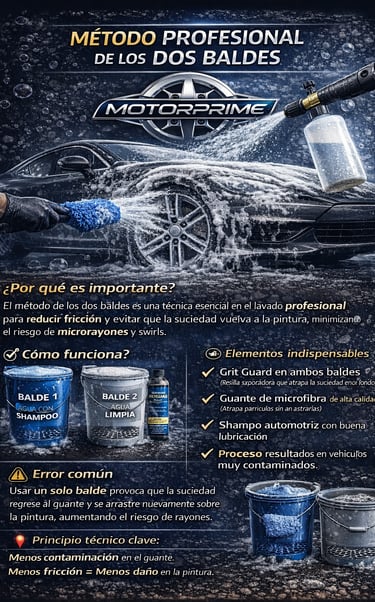 Si ese guante se vuelve a introducir en el mismo balde donde está el shampoo limpio, esas partículas regresan al sistema y se redistribuyen por todo el vehículo.